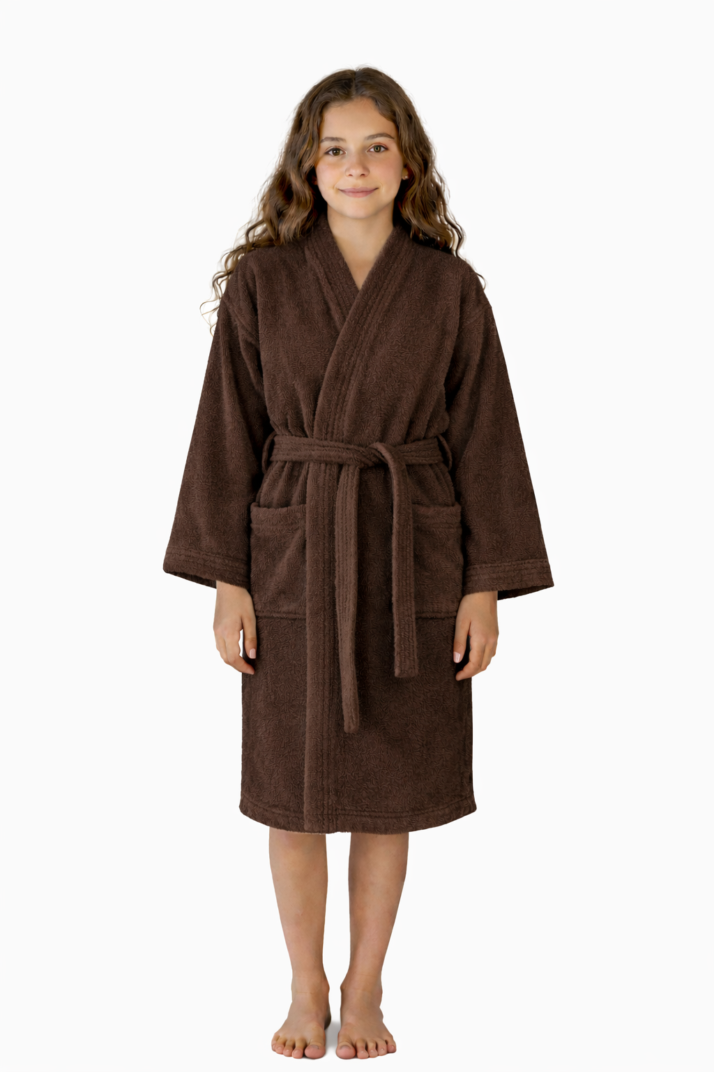 Bata infantil/juvenil 100% algodón, suave y cómoda para uso diario. Cuenta con listón ajustable para un mejor ajuste y corte práctico. Ideal para después del baño o para estar en casa con total comodidad. Diseño según modelo, tal como se muestra en las imágenes.