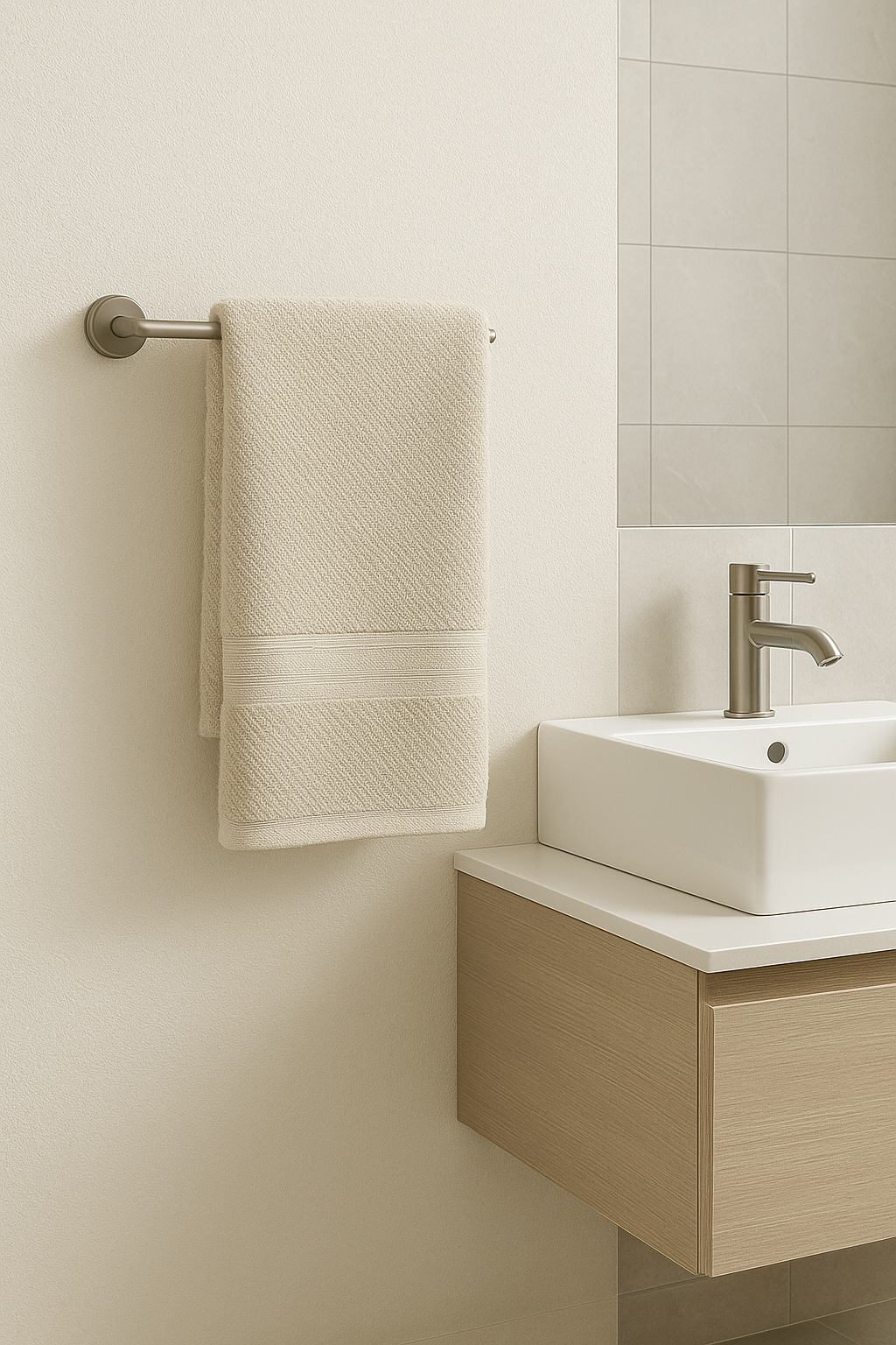 Una toalla compacta pero poderosa: absorbe, seca y luce increíble en cualquier espacio. ¡Dale un toque profesional a tu baño!